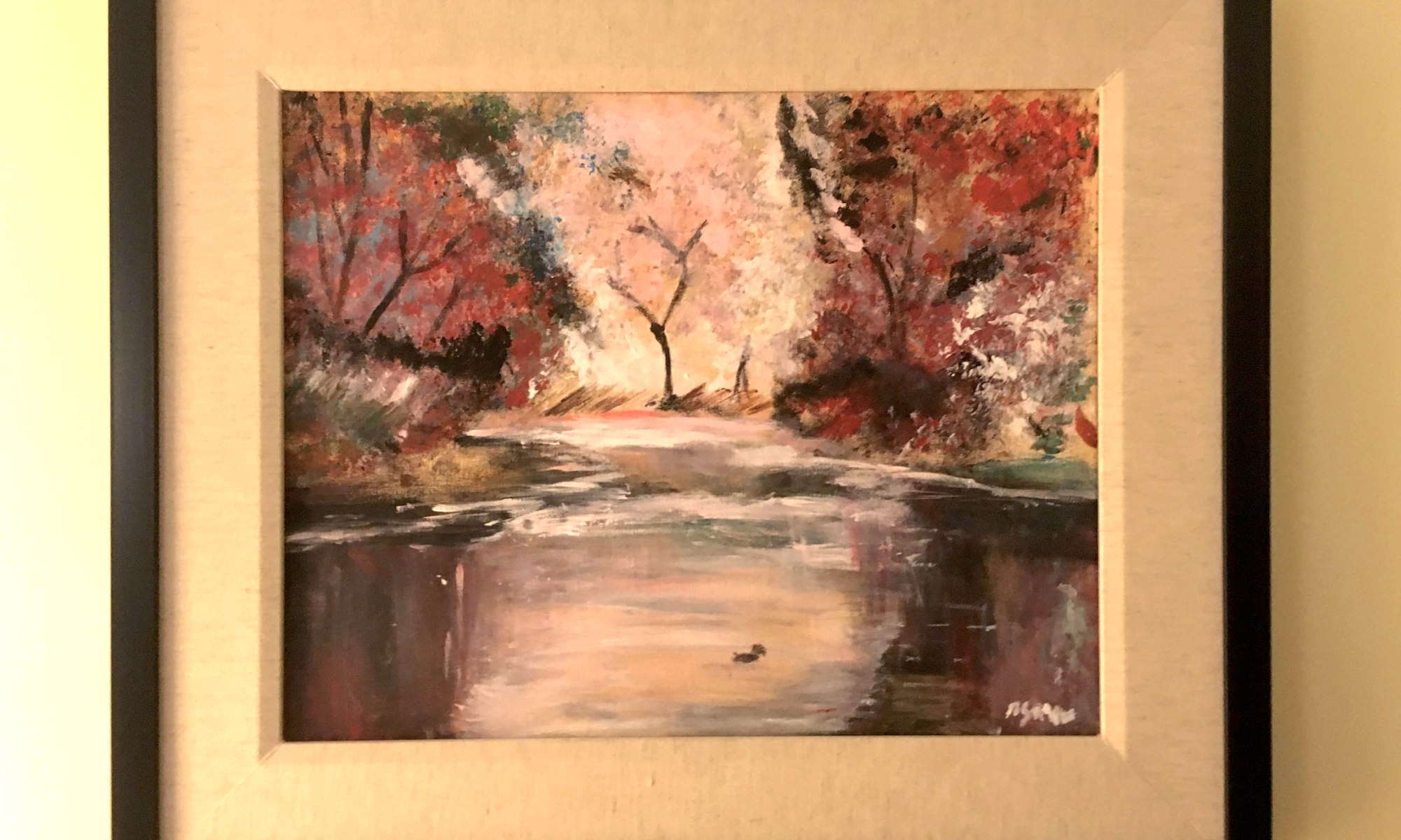 Four years ago tonight, Ryma painted this picture. She hadn’t painted in more than a decade, and decided to take a class. The participants weren’t meant to complete a painting in the 60 minute class, just learn about and practice the technique (which I believe was painting with sponges and rags). Anyway, she got this done during the class.